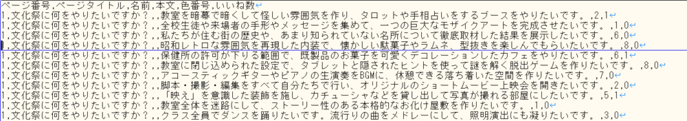 ふきだしの内容がCSVフォーマットでコピーバッファーにコピーされます。ExcelやGoogleスプレッドシート等に貼り付けてお使いください。
