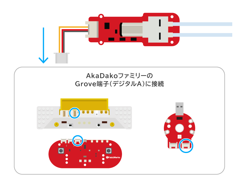 AkaDakoファミリーのGrove端子(デジタル)に接続できるポンプです。水を吸い上げて送ることができ、潅水や栽培の授業での活用も可能です。水以外にも水槽用のエアポンプとしても使用できます。チューブ(約50cm)が2本付いています。中学技術情報/計測制御に最適です。