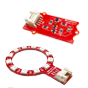 制御フィルムターミナルAkaDakoファミリーのGrove端子に接続して使えるフィルムターミナルで、おもちゃなどの電池ボックスの電池と端子の間に挟むことでPWM制御ができます。