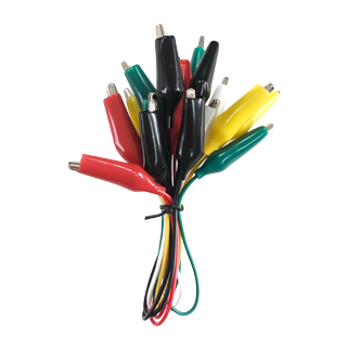 一般的なケーブルより短いミノムシクリップケーブルです。端子部分ははんだ付けされており、クリップ部分は大型で子供でも掴みやすいサイズです。