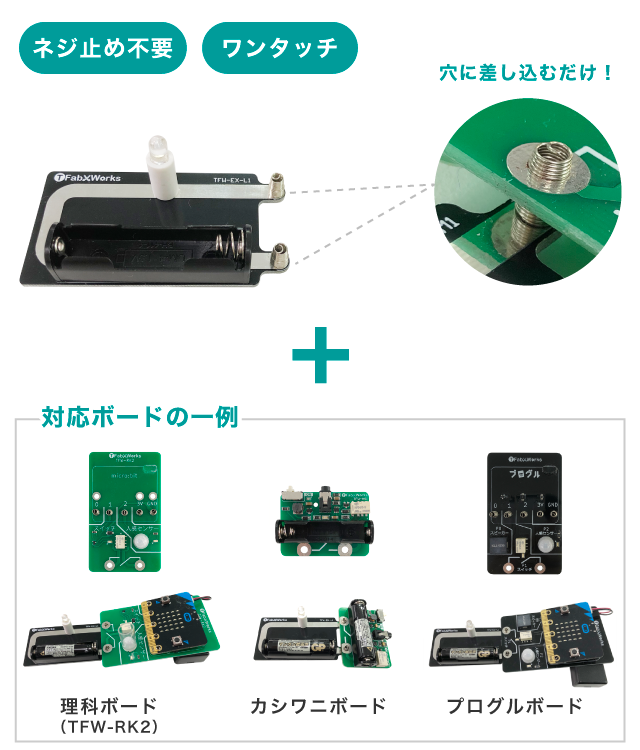 面倒なネジ止めは不要で、他のボードと簡単に合体することができます。